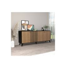 Buffet Moderno de 4 Puertas - Color Gris Oscuro-Roble - 160x40x72cm - Elegante Almacenamiento para Comedor.