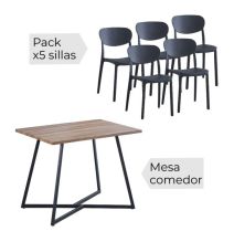 Conjunto Mesa y Sillas Comedor/Cocina: Mesa madera y Patas Metálicas En Negro (76x100x70 Cm) + 5 Sillas (80x40x55 Cm)